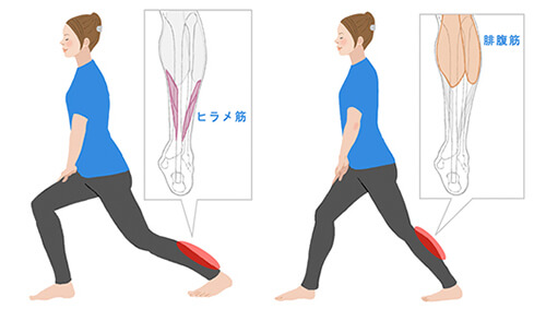 ③左足の膝を曲げると下部(ヒラメ筋)が伸びる