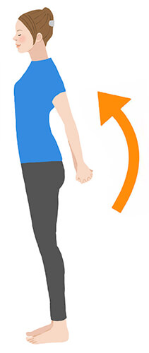 ②胸を開きながら、肘を伸ばして両手をできるだけ下ろす
